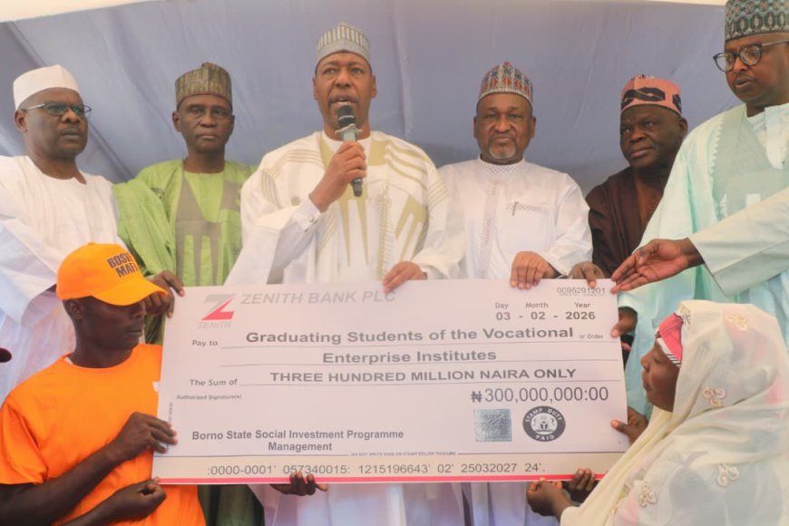 Borno State Governor, Babagana Umara Zulum, has empowered 2,970 youths who completed intensive vocational skills training across the state, with the distribution of starter packs and business kits valued at ₦2.05 billion.